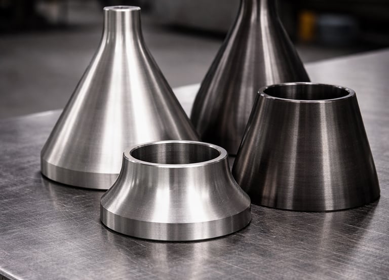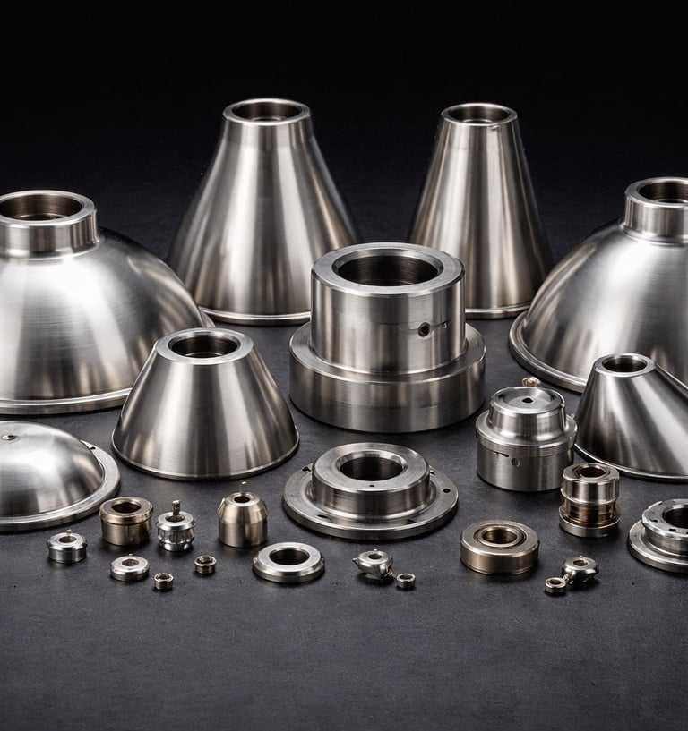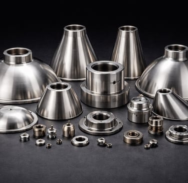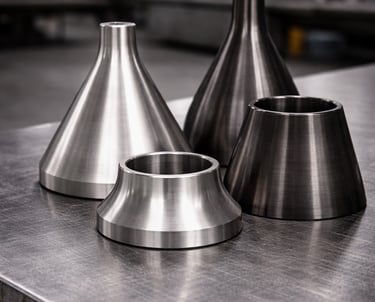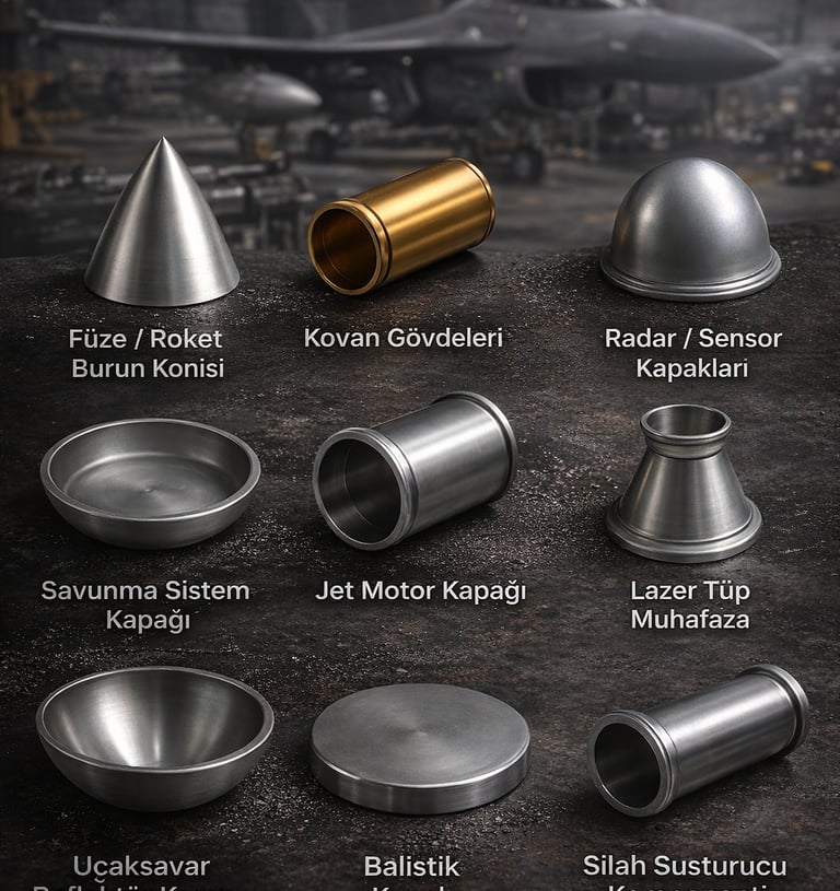 Farklı açılarda ve ölçülerde üretilen konik metal parçalar, endüstriyel ve savunma uygulamalarında yaygın olarak kullanılır.