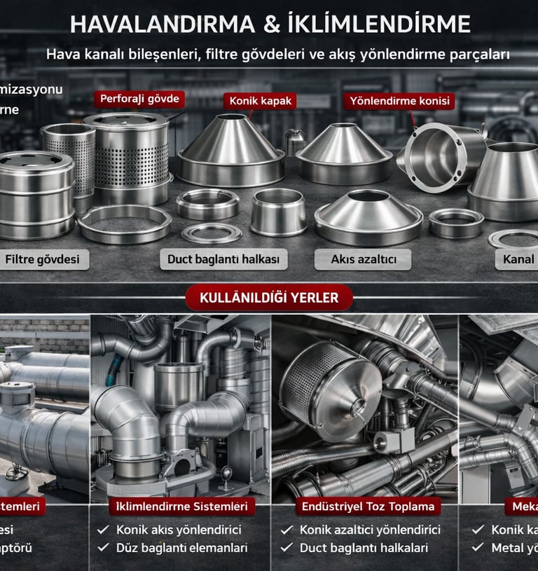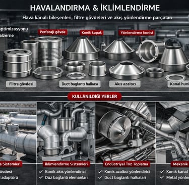 Hava kanalı bileşenleri, Emiş kapakları, filtre gövdeleri ve akış yönlendirme parçaları için Metal Sıvama